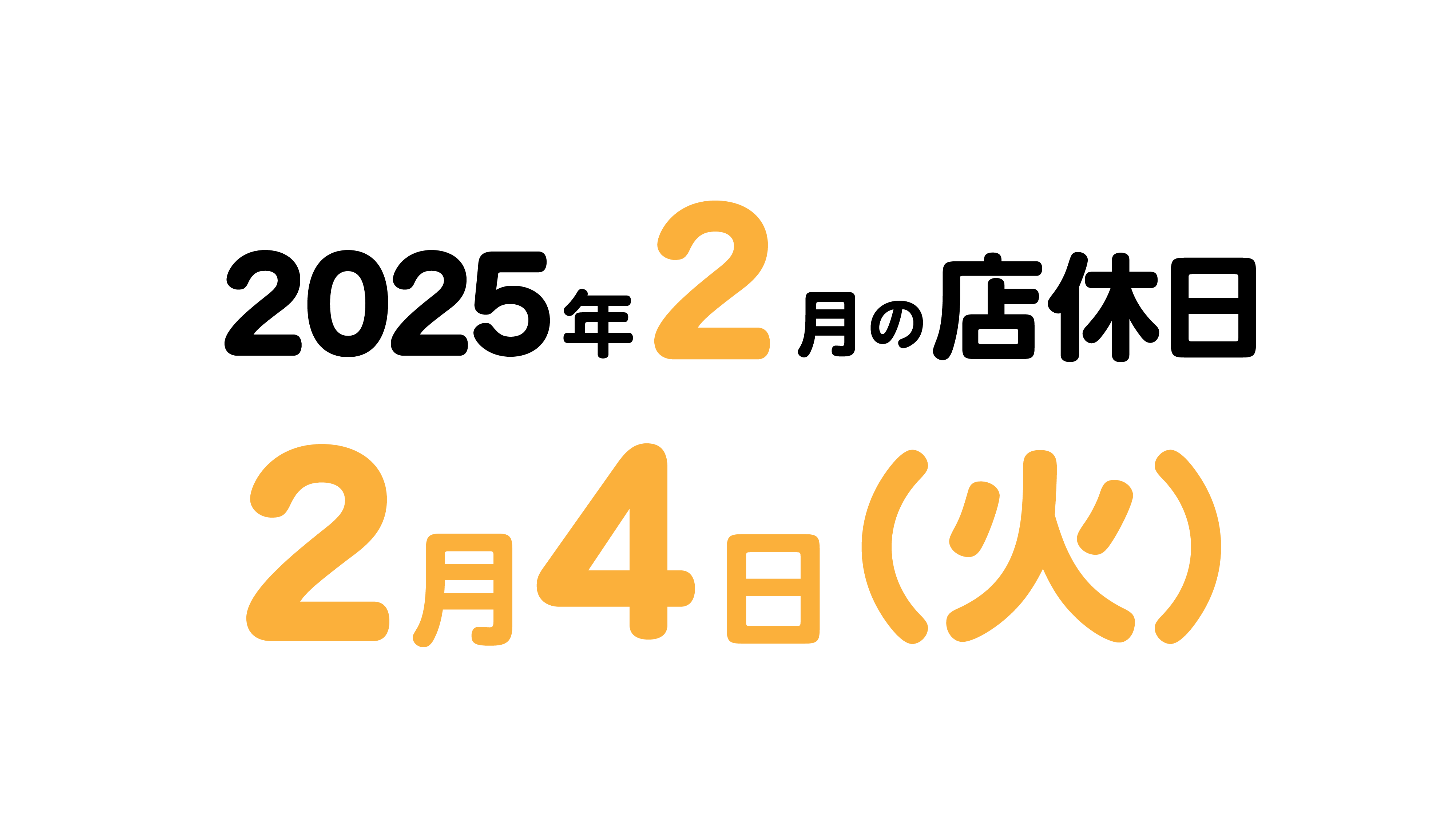 2025年2月の店休日について 2025 5/04 お知らせ 2025年1月25日2025年5月4日 2025年2月の店休日は2月4日(火)です。 来店予約好評受付中です。お電話もしくはネットで来店予約承っております。 お知らせ auショップ延岡多々良 au多々良 店休日 延岡多々良 よかったらシェアしてね! URLをコピーしました! URLをコピーしました! 2025年1月の店休日について 2025年3月の店休日について 関連記事 2025年12月の店休日について 2025年11月25日 2025年11月の店休日について 2025年10月25日 2025年10月の店休日について 2025年9月25日 2025年9月の店休日について 2025年8月25日 2025年8月の店休日について 2025年7月25日 auショップ高千穂 2025年8月1日より営業時間が変更になります。 2025年6月29日 2025年7月の店休日について 2025年6月25日 2025年6月の店休日について 2025年5月25日