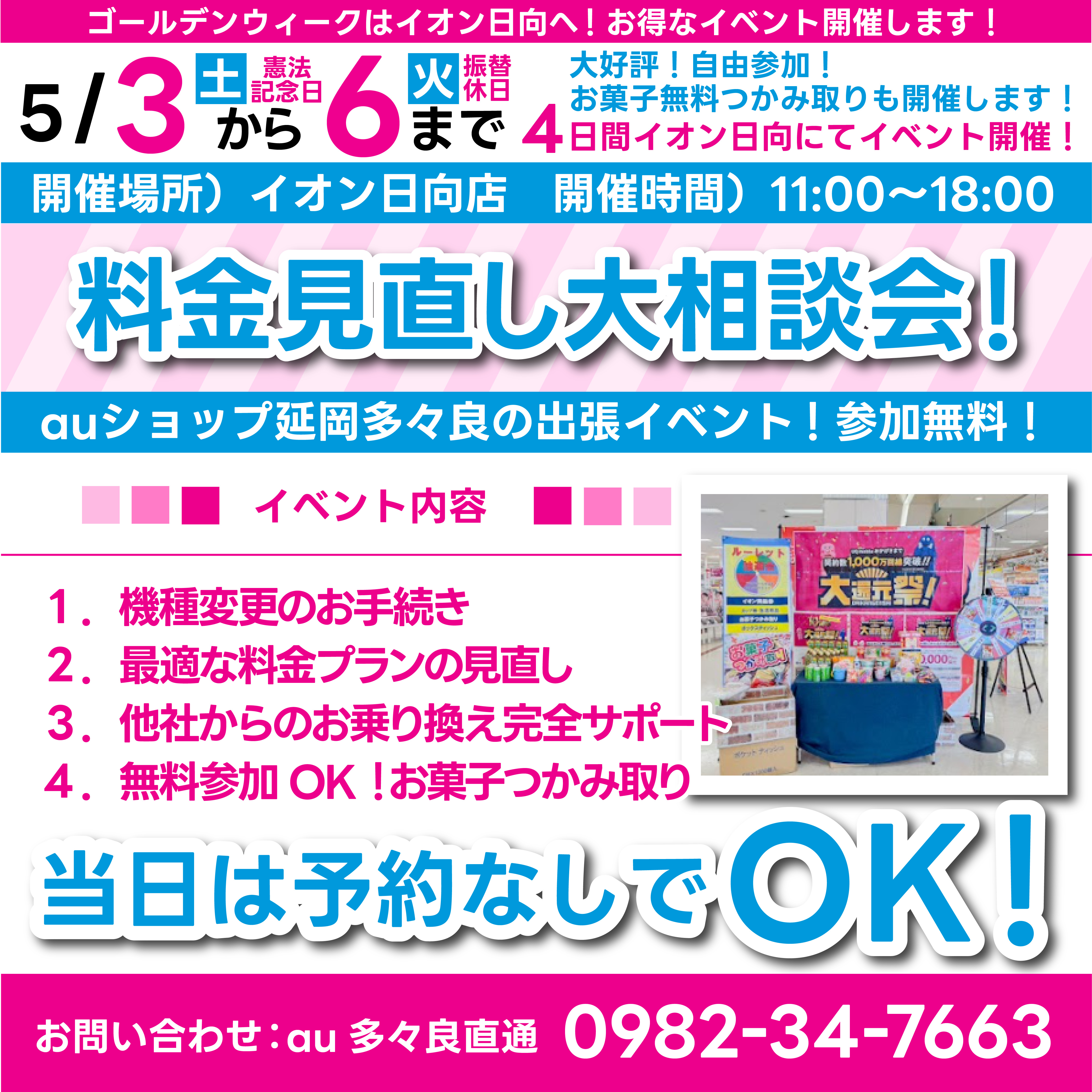イベントの詳細やご相談は今すぐ電話でご相談いただくか、auショップ延岡多々良へ直接お電話ください!