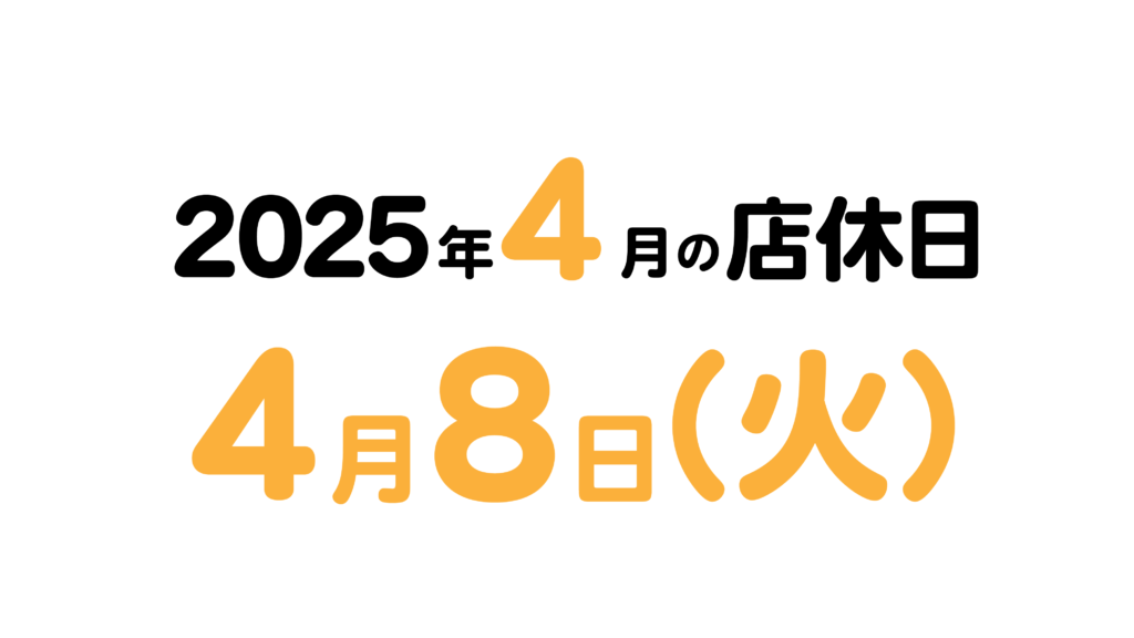2025年4月の店休日は4月08日(火)です。 来店予約好評受付中です。お電話もしくはネットで来店予約承っております。 -